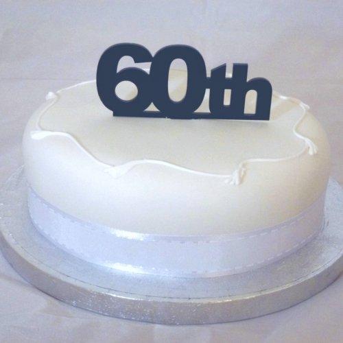 "60th" Cake Topper 6cm (2.5inch) Black Solid Acrylic (Overall size 10cm x 12cm inc spike)