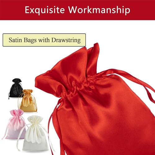 - Package Include: You will receive 50pcs multi-colored satin bags.Golden drawstring bags,black drawstring bags, pink drawstring bags,Beige drawstring bags and red string bag,each color come with 10pc and in total 50pcs.