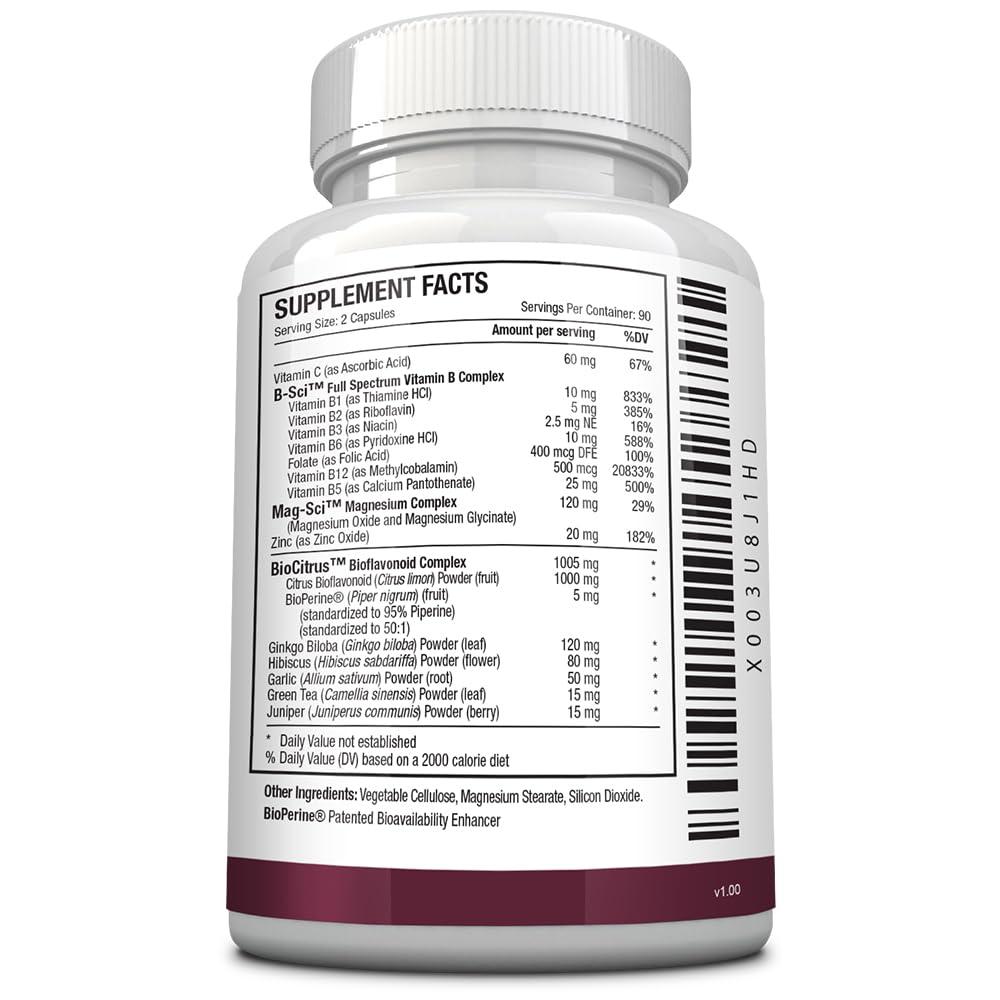 - Includes B-Sci: A unique blend of Vitamins B1, B2, B3, B5, B6, B9, & B12.