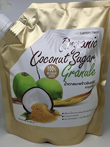 Lemon Farm Organic Coconut Sugar Granule use as sugar substitute. Perfect for tea, coffee, drinks, and any dishes. This product is made from sap of organic Thai coconut blossoms. Very low GI 35. This does not cause blood sugar spike. It naturally contains special Thai coconut fragrance, calcium, iron, potassium, etc. Should the granules stick together, simply crush and shake well before use. Close the lid tightly after opening. Keep in a cool and dry place (best if refrigerated). Remark : This package is best for quality storage. To maintain the quality of sugar, please do not change the packaging.