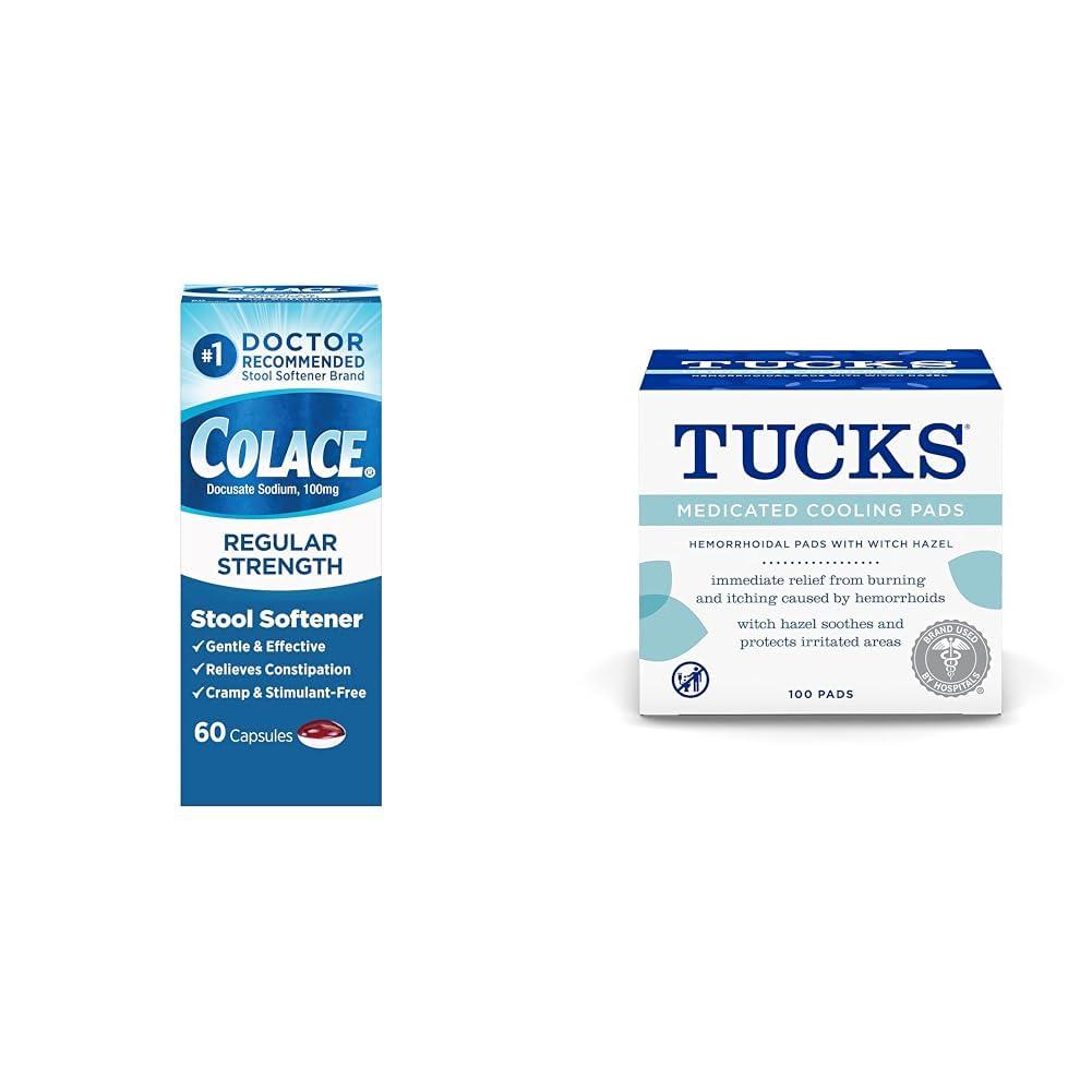 Colace Regular Strength Stool Softener capsules gently soften hard and painful stool for a number #2 thats easy to do. Colace Capsules are the #1 Doctor recommended stool softener brand and have been trusted by doctors and patients for nearly 60 years to relieve occasional constipation. Gently softens stools: Colace Regular Strength Stool Softener relieves many symptoms of occasional constipation, including straining during bowel movements, hard dry stools & infrequent or irregular bowel movements. Colace is not a stimulant laxative. The active ingredient, docusate sodium, allows water and fats to get into the stool, helping to soften and make passing it more comfortable.