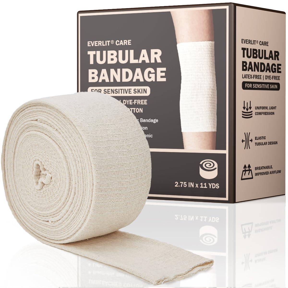 - UNIFORM GENTLE COMPRESSION- The Everlit Care elasticated tubular bandage delivers reliable, gentle, consistent tissue support with a broad variety of uses. The compression bandage delivers adjustable pressure, and can be used as cotton stockinette compression bandage for sprains, strains and other injuries, as knee support/brace, cast padding, and knee wrap, or as compression bandage socks and tubing.
