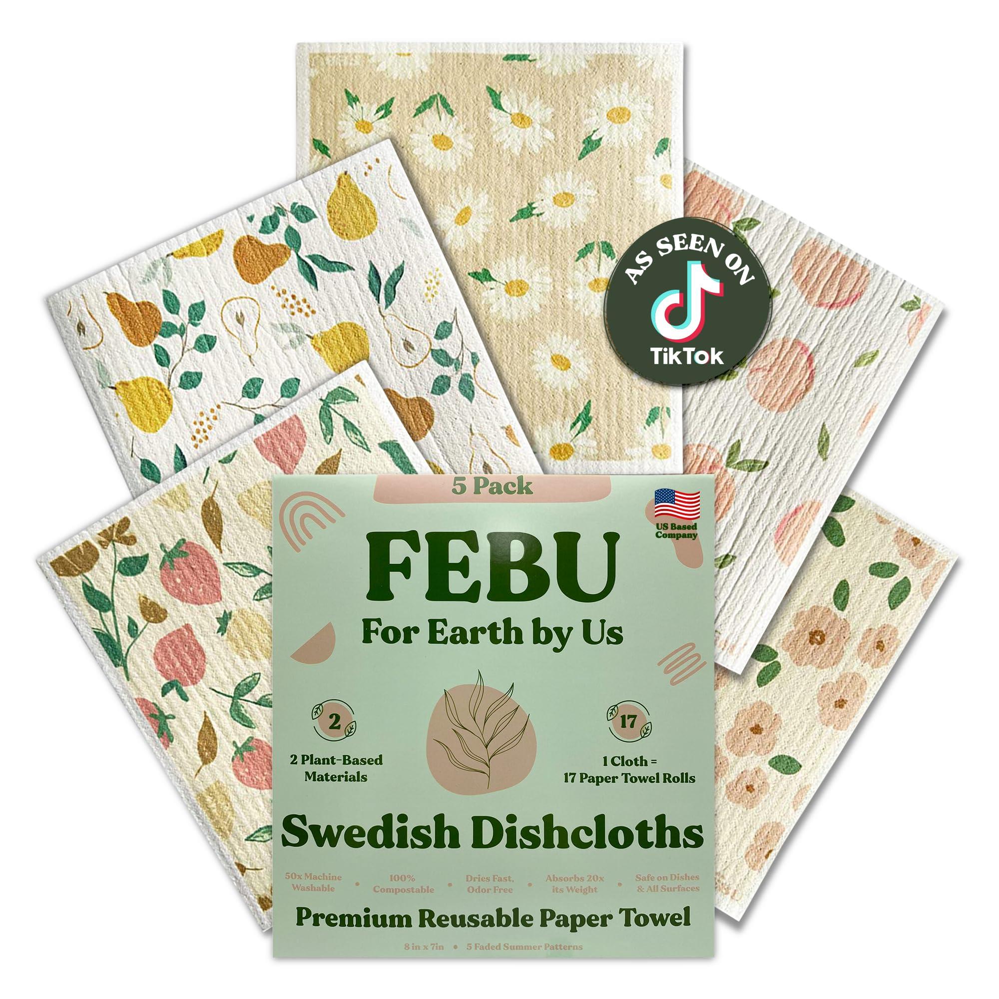 FEBU FEBU Swedish Dishcloths for Kitchen | 5 Pack Faded Summer Reusable Paper Towels Washable | Swedish Dish Towels | Non-Scratch Cellulose Sponge Cloths | No Odor, Biodegradable Cleaning Cloths
