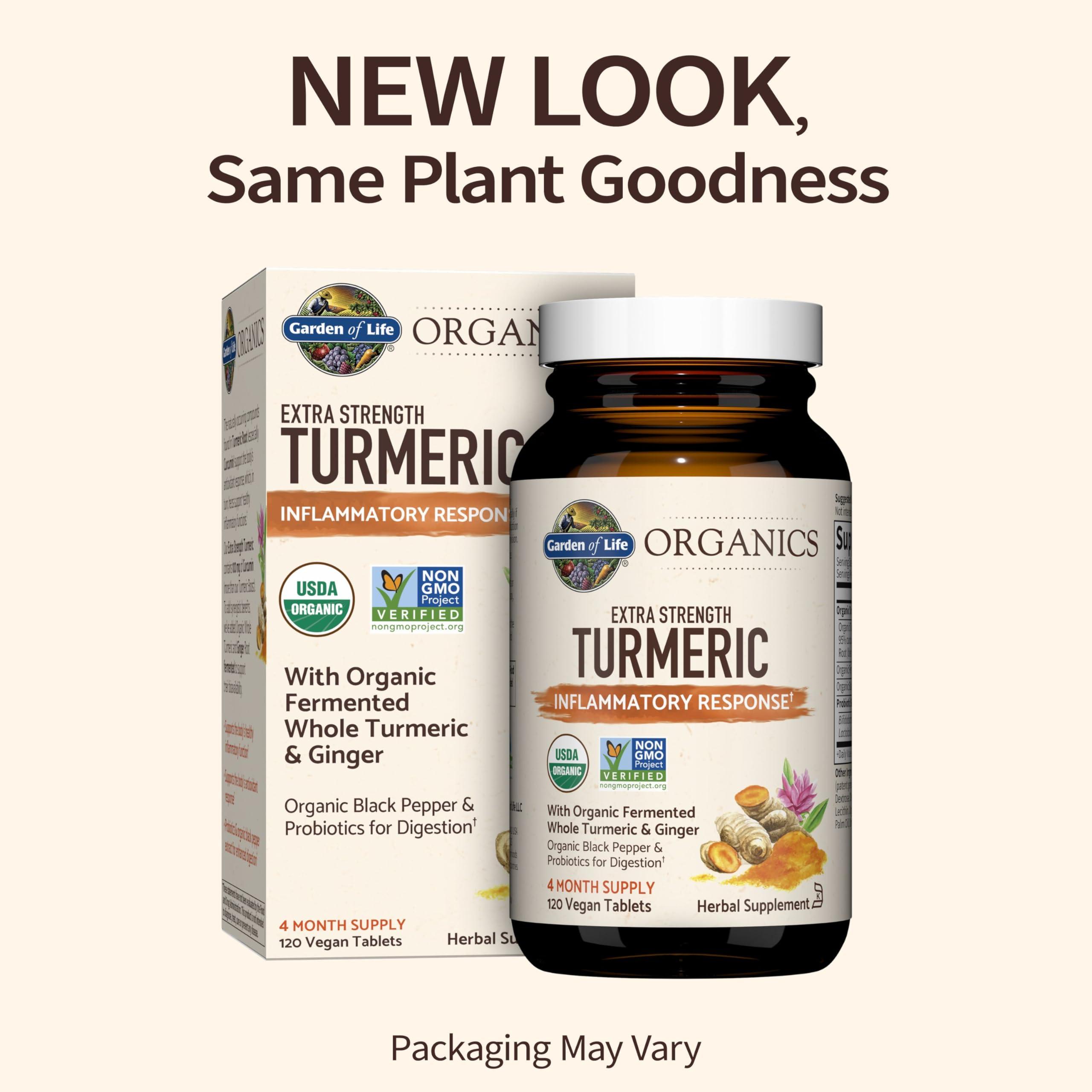Garden of Life Garden of Life Organics Extra Strength Turmeric Inflammatory Response 120 Tablets-100Mg Curcumin (95% Curcuminoids) Black Pepper, Probiotics, Organic Non-GMO Vegan Gluten Free Herbal Supplement