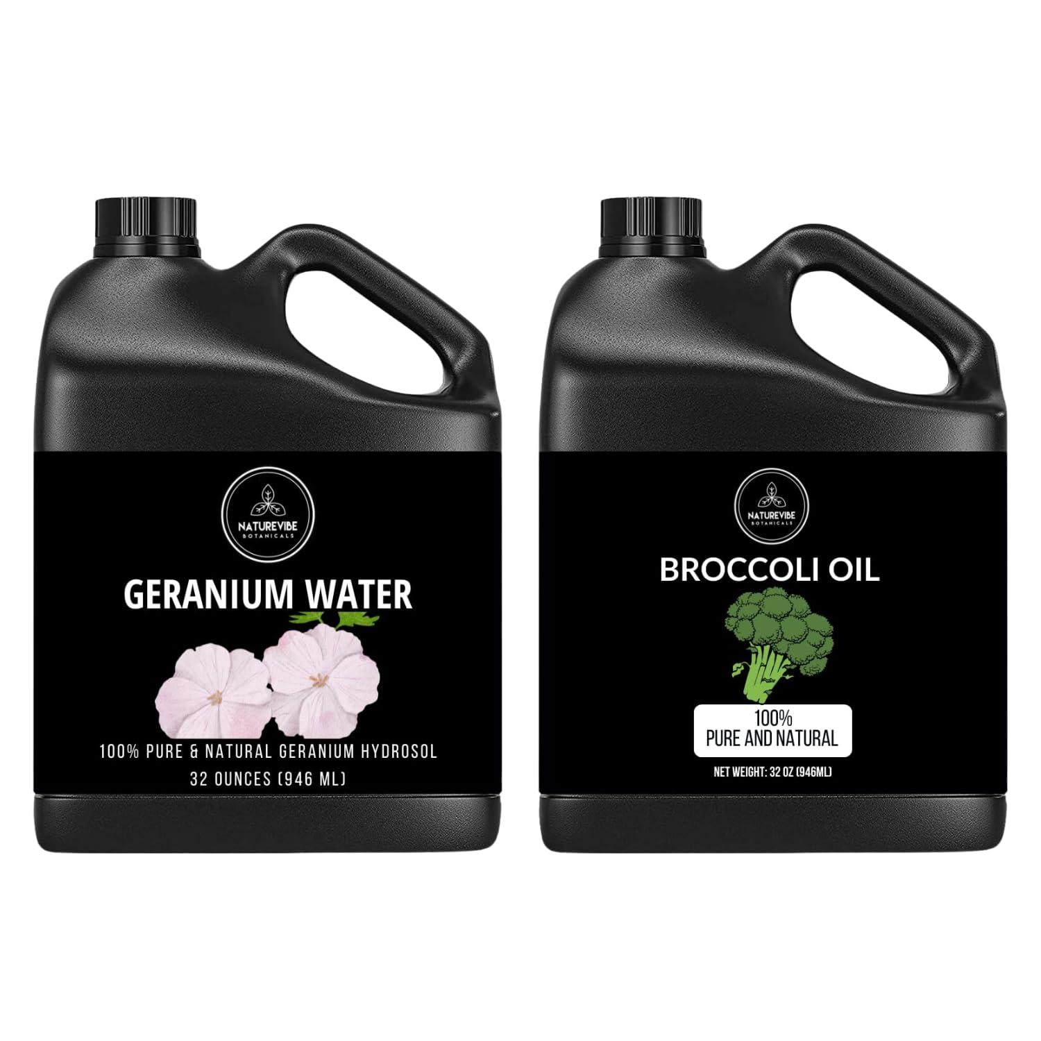 - Our premium cold-pressed Geranium Water and Broccoli Oil is packaged in dark bottles to protect it from harmful ultraviolet rays.