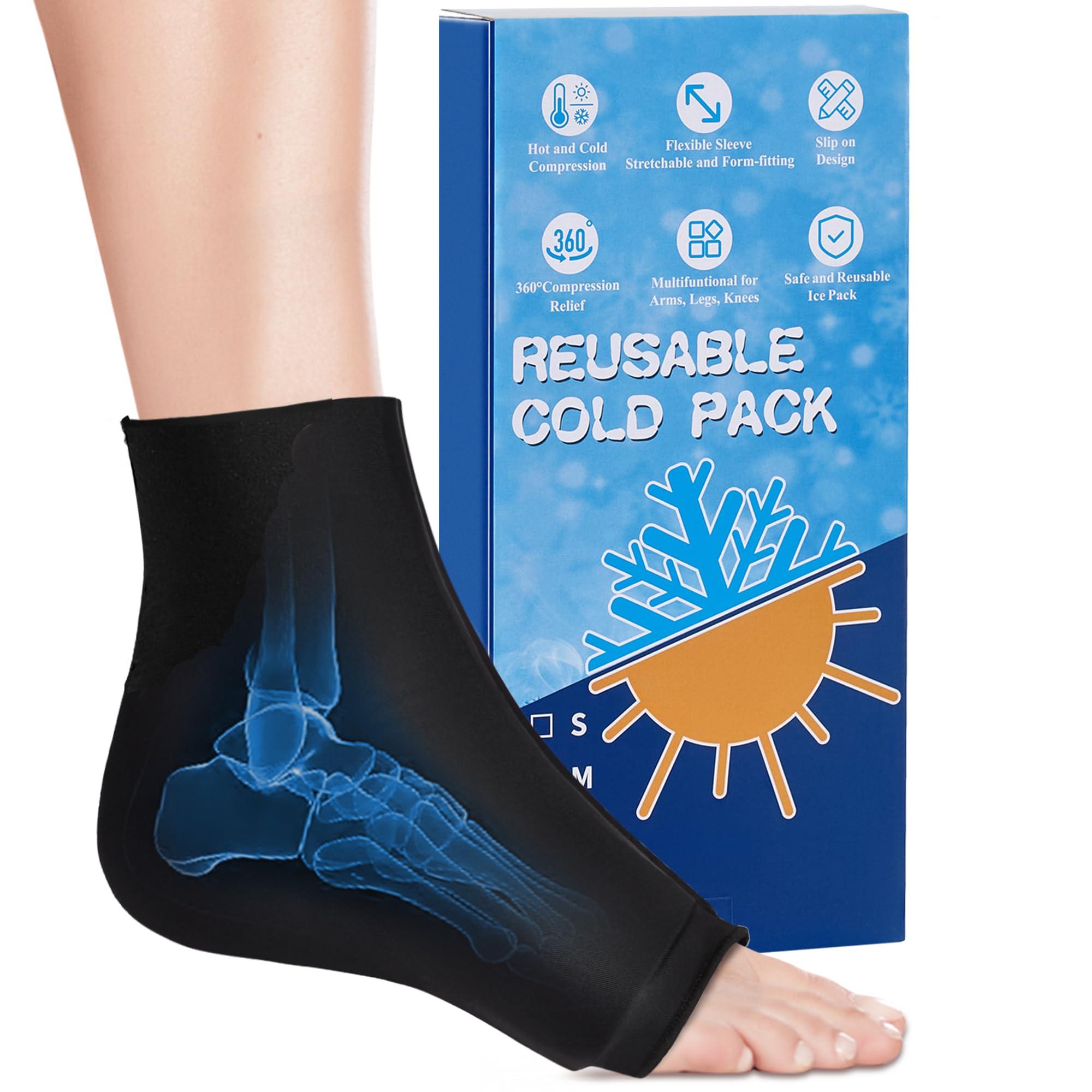 - Reusable Gel Ice Pack for Instant Pain ReliefThis ankle & foot ice pack is reusable and durable. It's great on ankle/foot, calf, wrist/forearm, which helps you relieve pain from plantar fasciitis, sprained ankles, achilles tendonitis, foot heel, arthritis pain, swelling, strains, sprains, patella surgery, tendinitis, bursitis, tendinosis, osteoarthritis.