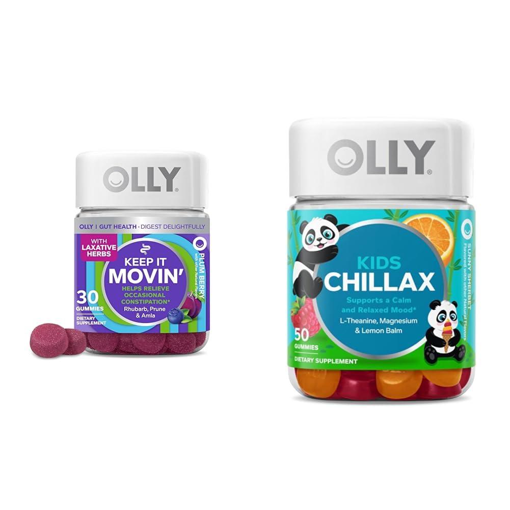 The OLLY Constipation Relief and Kids Calm bundle includes gummy supplements to address both digestive health and mood support. The Constipation Relief gummies feature a blend of rhubarb, prunes, and amla to gently relieve occasional constipation overnight. These plum berry flavored gummies contain no synthetic colors or flavors and are gluten-free. The Kids Calm gummies include L-theanine, magnesium, and lemon balm to support a relaxed state of mind in children ages 4 and up. With a sweet sunny sherbet flavor containing no synthetic colors or flavors, these gummies are delightfully tasty. Together, these two OLLY products work to cover both digestive and mental wellness for the whole family. The Constipation Relief gummies provide effective yet gentle overnight relief from occasional constipation while the Kids Calm gummies promote relaxation and engagement. This bundle allows you to address multiple health needs in easy-to-take fruity gummy form. The plum berry and sunny sherbet flavors make these supplements tasty and easy to incorporate into your daily routine. Give your digestive system some extra care while helping your kids chill out when they need it with this dynamic digestive health and mood support bundle from OLLY.