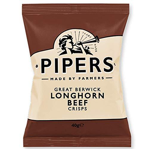 Longhorn beef flavour potato crisps Made by farmers Crisps as they should taste Live life full of flavour! Gluten free Delicious succulent tasting crisps made with Longhorn Beef - Award-winning Pipers crisps are made with British potatoes and carefully sourced ingredients - Gluten free - Perfect for an indulgent night in or alfresco dining