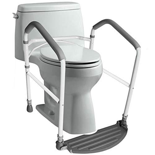 - Fits Most Toilets. Note: Dimensions: 20 width between arms; Height adjustable 28 to 36 inches floor to top of arm (highest point). Height is adjustable to meet your custom needs. Weigh Capacity: 300 LBS