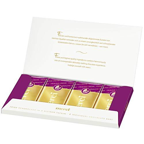 The coffee cream table by merci is a harmonious blend of creamy milk chocolate and fine coffee flavor. The delicately melting chocolate is a special treat and has been divided into four small plates. This makes it ideal for sharing with friends. aromatic coffee note creamy pleasure in 4 small plates