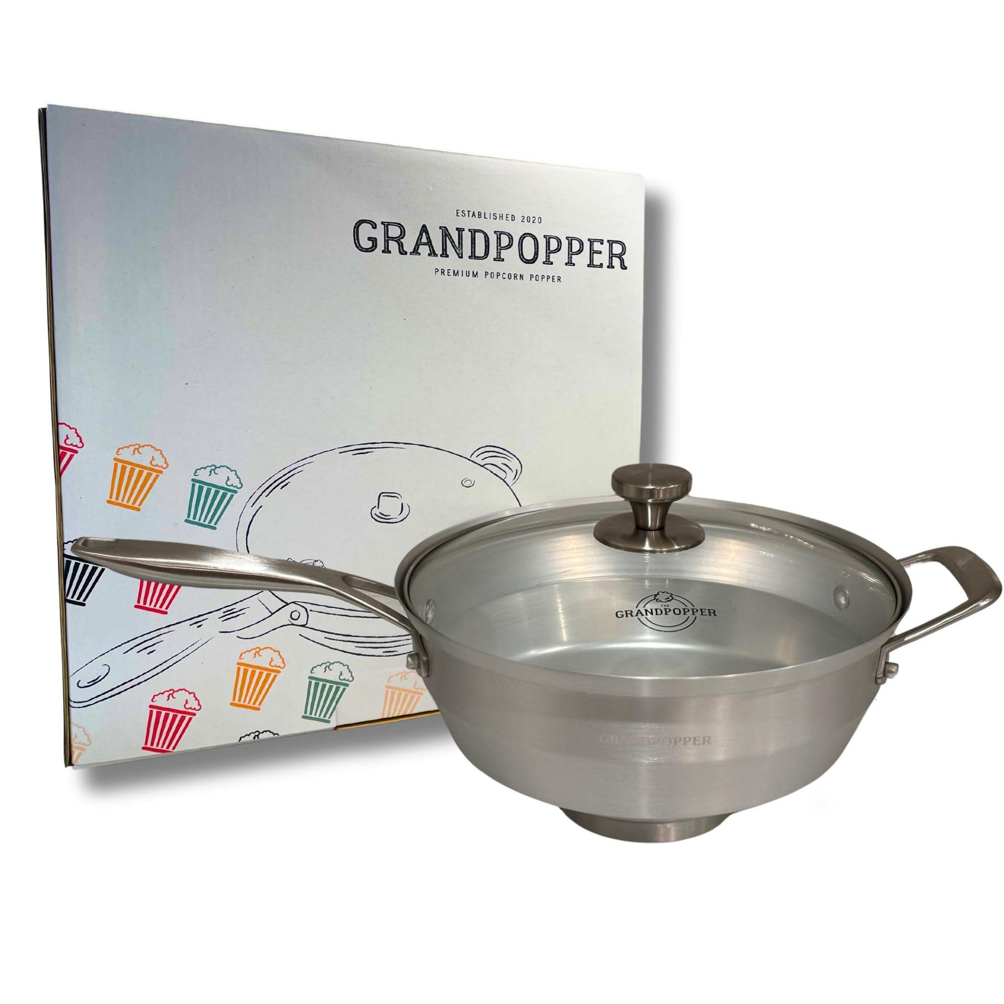 Indulge yourself with the GrandPopper Popcorn Popper, your ticket to perfectly popped stovetop popcorn at home! Crafted by two passionate brothers who adore the art of popcorn-making, this ingenious design brings convenience and flavor to your snack time. With no shaking or stirring required, the GrandPopper takes the hassle out of stovetop popcornsimply listen for the popping to stop! It was invented by true popcorn enthusiasts, ensuring that everyone can enjoy their favorite snack without the fuss. Heres how the GrandPopper pot/pan works: Add 1/2 cup of popcorn kernels and pour in 3-4 tablespoons of oil (we recommend coconut oil for a delightful flavor). Heat over medium-high for 3-5 minutes (adjust for electric stovetops) and wait for 1-2 seconds between pops. When its ready, serve directly from the GrandPopper into your favorite bowl, topping it off with classic salt or a creative blend. Whether its movie night, a cozy evening, or a gathering with friends, The GrandPopper delivers delicious stovetop popcorn every time. A word of caution: The lid and handle can get hot during cooking, so handle with care. Get ready to elevate your popcorn game with The GrandPopper