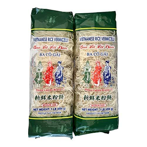 - Three Ladies Medium Size Dry Vietnamese Rice Vermicelli, Pack of Two 1 Pound Bags, Approximately 9 Nest Type Cakes Per Bag.