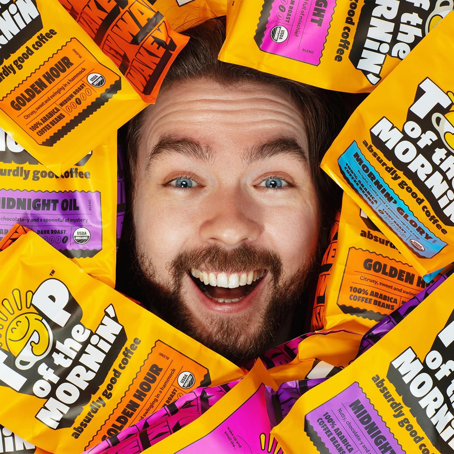 - So here it is Top of the Mornin. So bright, even the darkest roasts are neon. THE freshest. THE richest. THE mellowest. THE best beans youll put in your mouth, ever. Its like the cherry on the cake of coffee.