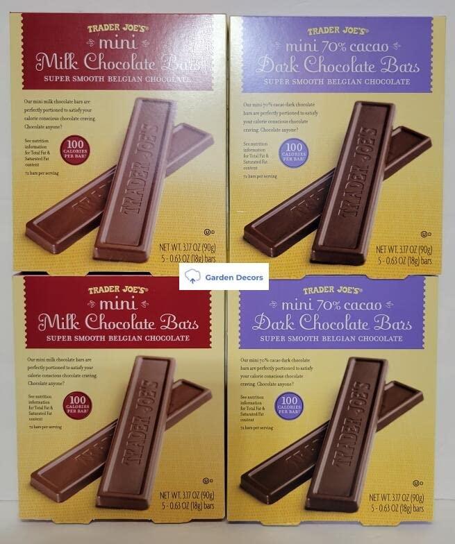 Trader Joe\'s Mini Milk Chocolate & 70% Cacao Dark Chocolate Bars 100 Calories 3.17oz 90g (Four Boxes)
