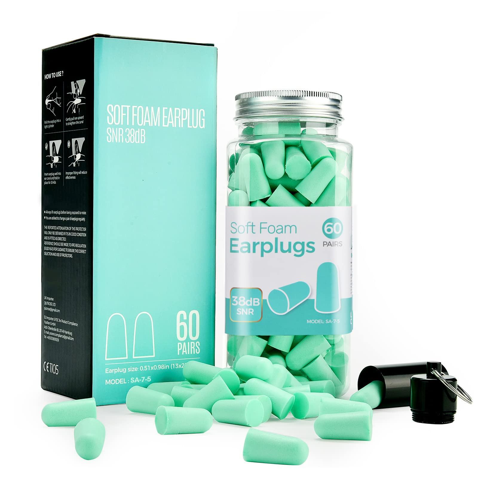 - :These soft ear plugs carry a high noise reduction rating of 38dB, competent to block out loud noises for hearing protection and concentration, and shut out distractions when sleeping. These noise-cancelling earplugs are suitable for sleeping, woodworking, snoring, studying, travel, concerts, loud events, etc.