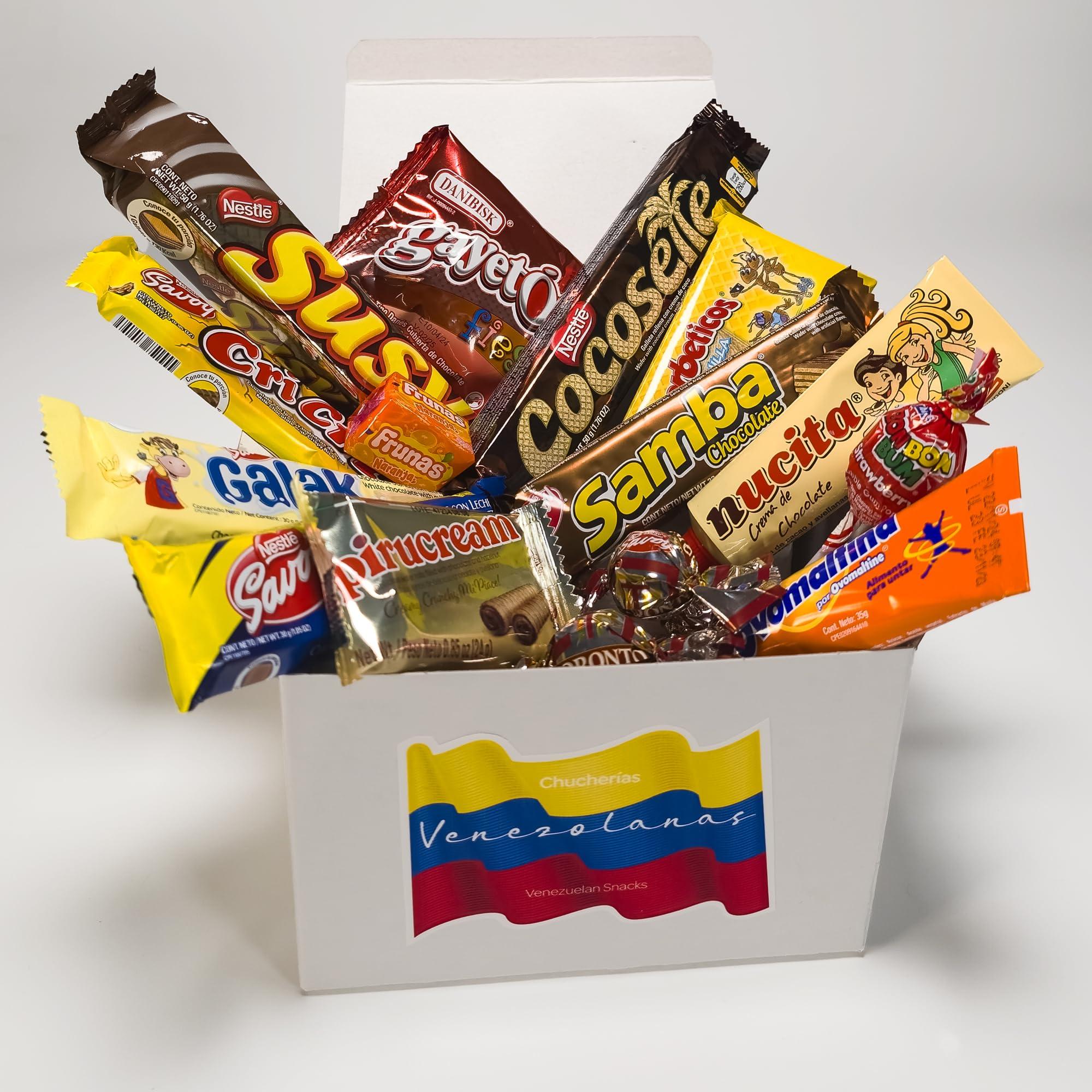 Imagine unwrapping a vibrant gift box filled with the delightful flavors of Venezuela. Nestled within, you'll discover an assortment of beloved Venezuelan snacks, each promising a taste of tradition and nostalgia. The centerpiece of this culinary journey is a delightful treat of chocolate-coated cookies that melts in your mouth with each bite. Alongside it, you'll find the rich and creamy heavenly blend of hazelnut and chocolate that's perfect for indulgent moments. Adding a crunchy twist to the mix are the chocolate-covered hazelnuts, offering a satisfying crunch with every munch. For those with a sweet tooth, a sweet, chewy coconut wafer that embodies the essence of tropical flavors awaits. No Venezuelan snack box is complete without the classic rolled wafer filled with luscious hazelnut cream, a beloved treat that has stood the test of time. While the exact contents may vary to accommodate availability, rest assured that each replacement is carefully chosen to maintain the box's value and the authenticity of the Venezuelan snacking experience. Whether it's exploring new flavors or relishing familiar favorites, this gift box is a celebration of Venezuela's rich culinary heritage, meant to be enjoyed and shared with friends and family alike. Includes: 17 Assorted Venezuelan candies, chocolats, cookies and wafers.